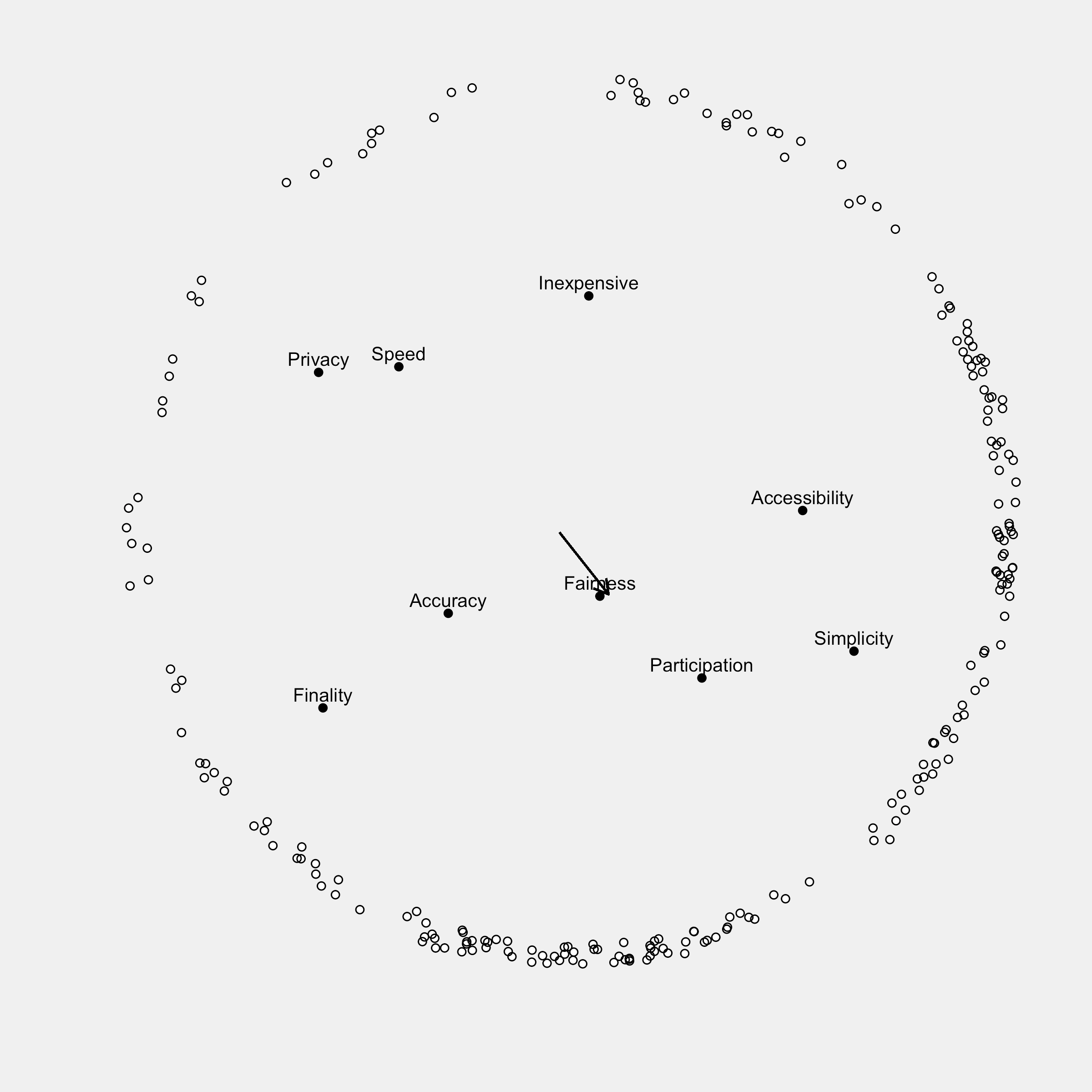 This Article fills that void with empirical analysis. It analyzes an original dataset based on 1200 surveys mailed to a broad range of litigants and judges asking for their views on procedural values. It interprets survey responses by introducing to legal scholarship a novel combination of methodological tools: multi-dimensional scaling and circular regressions.